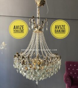 Kristal taşlı eski avizelerinizin yeni kaplaması, taş dizimi, elektrik tesisatı ve duy değişimi vs. ilk gün gibi yeniliyoruz.